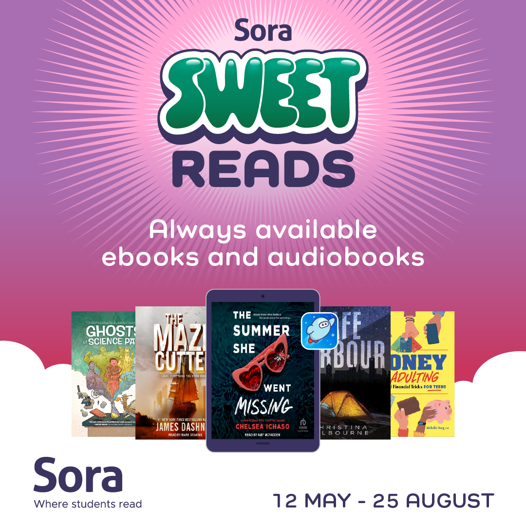 Sweet Reads titles are always available via Sora (download the app and login with your ISU Google account) until August 25, 2025. (Parents, you can also have access--just email Ms. Surridge and ask her to create an account for you.) There is a wide variety of books available to appeal to all readers. The best part is that they are always available which means these are the ideal titles to read with friends. Click on the image below to go directly to Sora and borrow these titles.